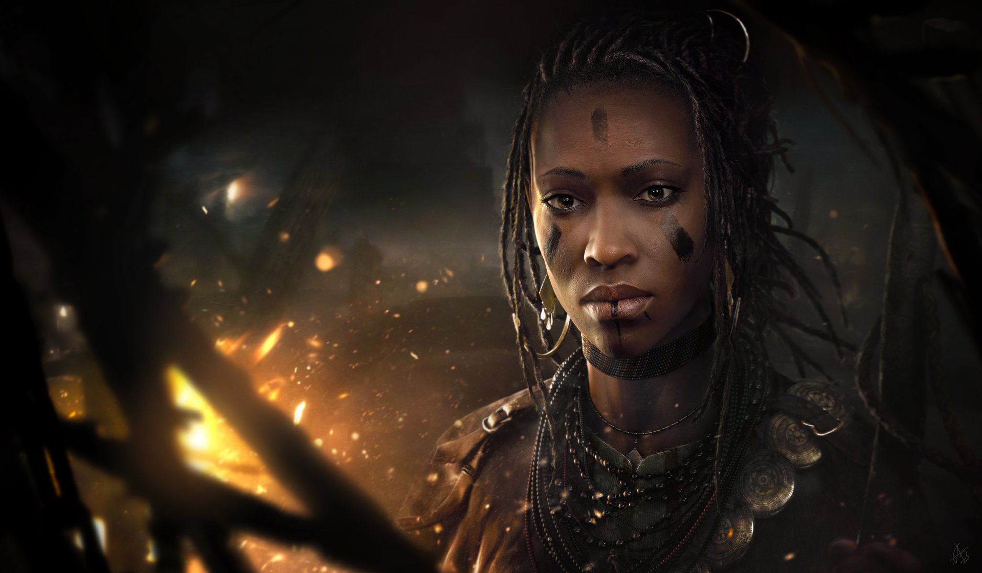 Wojownik w koronie na tle ptaka lecącego z ognia