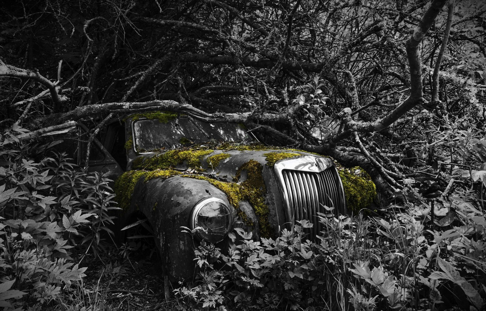 Zapomniana staruszka pokryta mchem