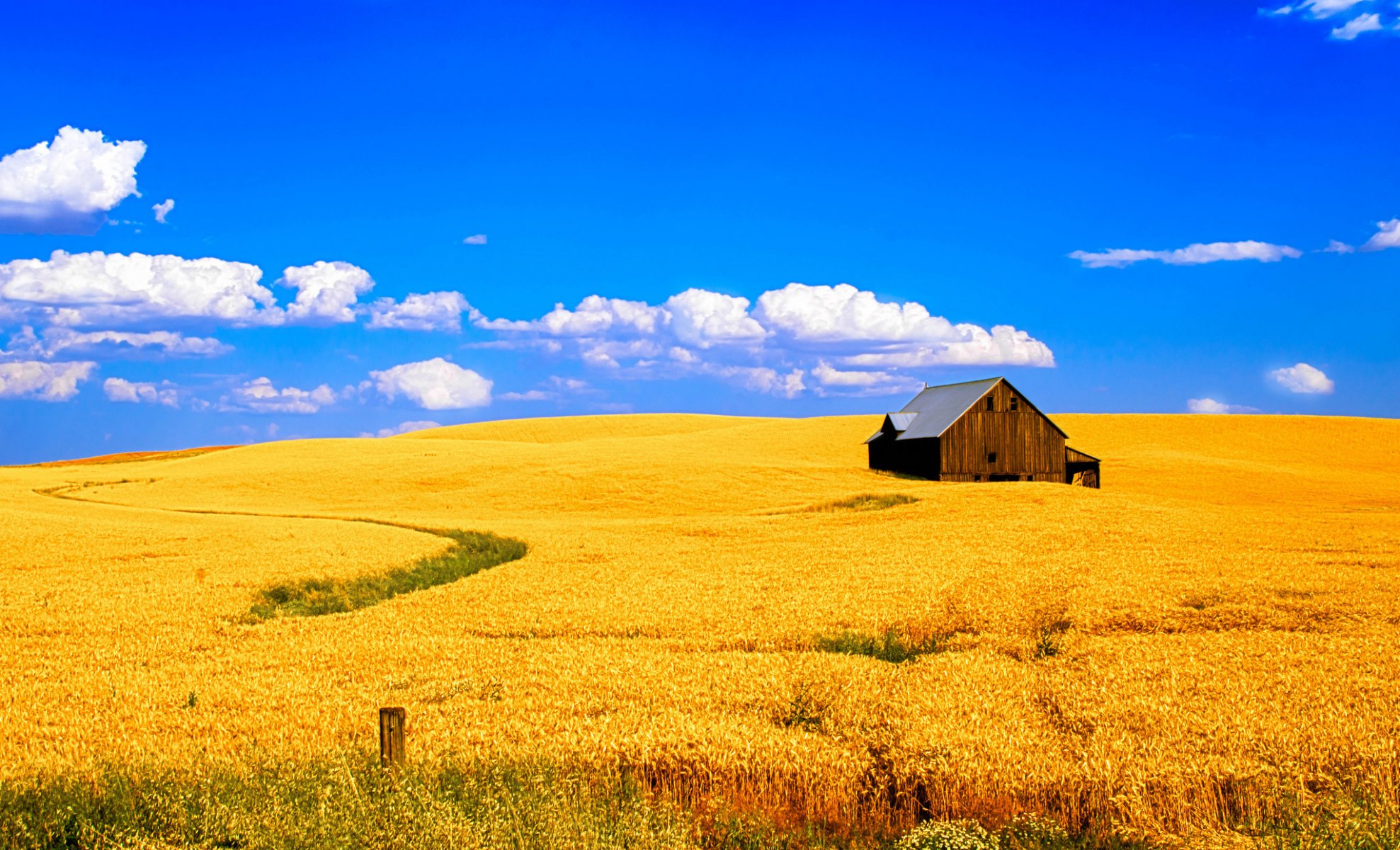 Dom i pole na tle nocnego nieba i jasnego Księżyca