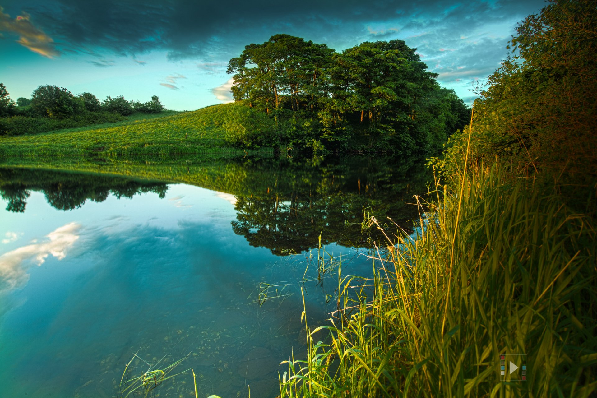 Rzeka w jesiennym lesie pokrytym opadłymi liśćmi