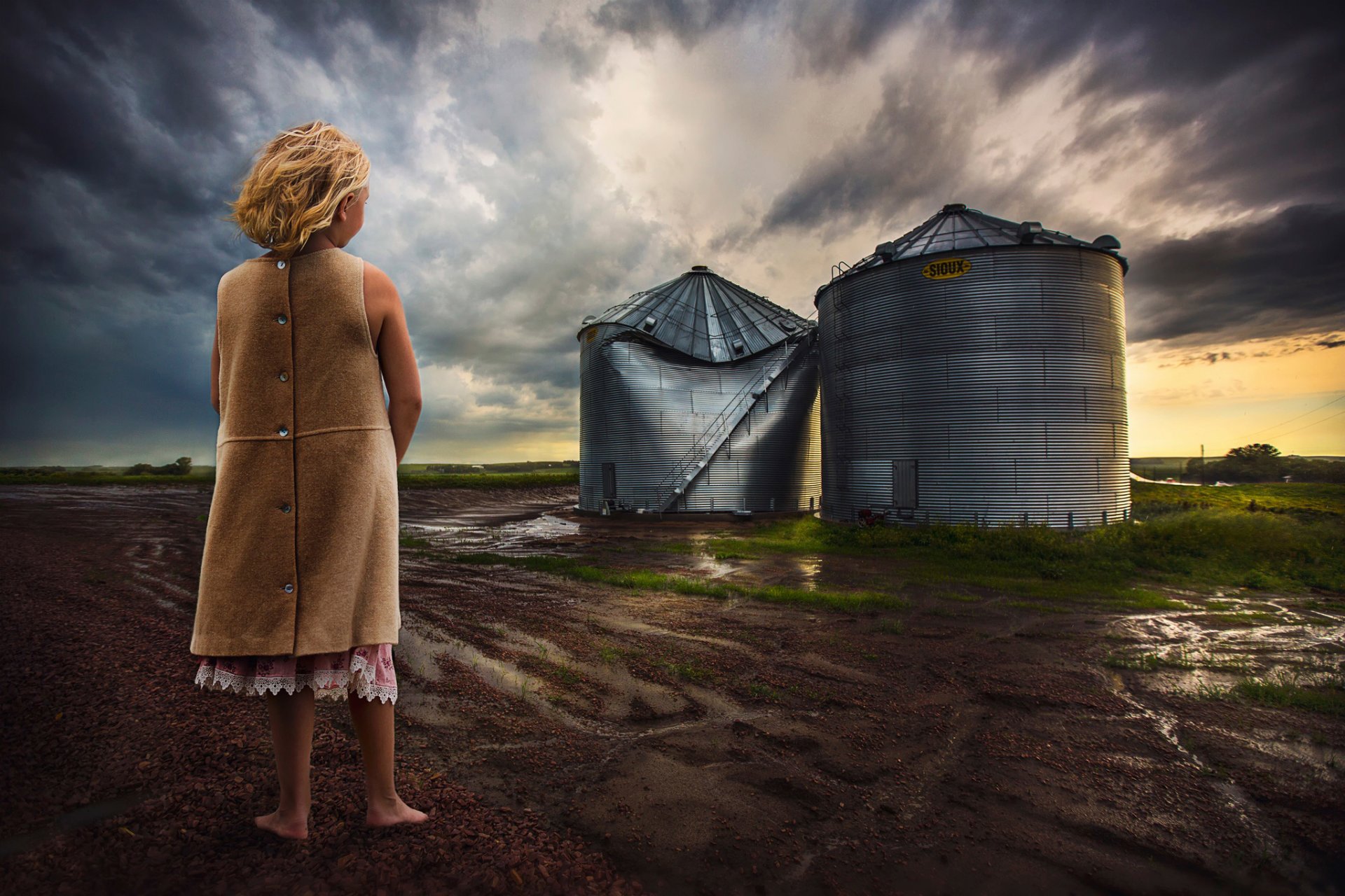 Skutki tornada. Boso dziewczyna po burzy