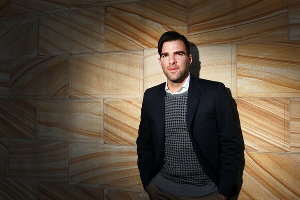 Zachary quinto w stylowej kurtce i modnej fryzurze