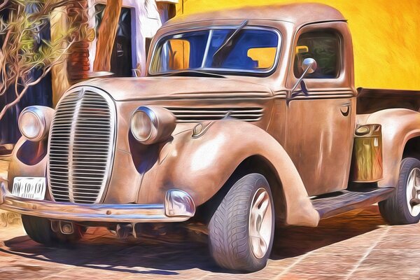 Klasyczny samochód retro z farbą w kształcie ogniaKlasyczny samochód retro z farbą w kształcie ognia