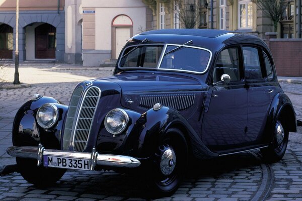 Klasyczny retro samochód z przodu z chromowanym przednim zderzakiemKlasyczny retro samochód z przodu z chromowanym przednim zderzakiem
