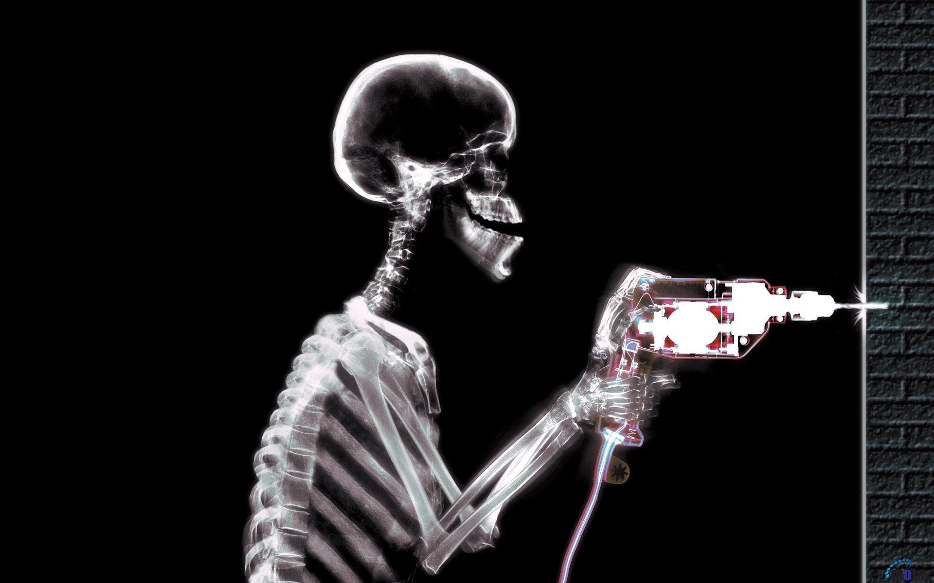 Zdjęcie rentgenowskie szkieletu z wiertłem
