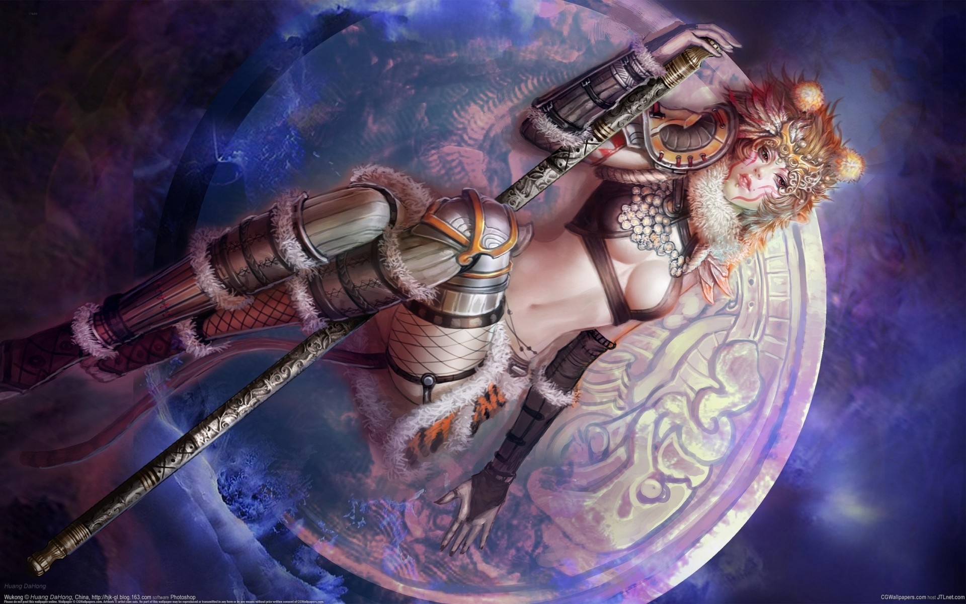 Dziewczyna w zbroi i pończochach leży na tarczy