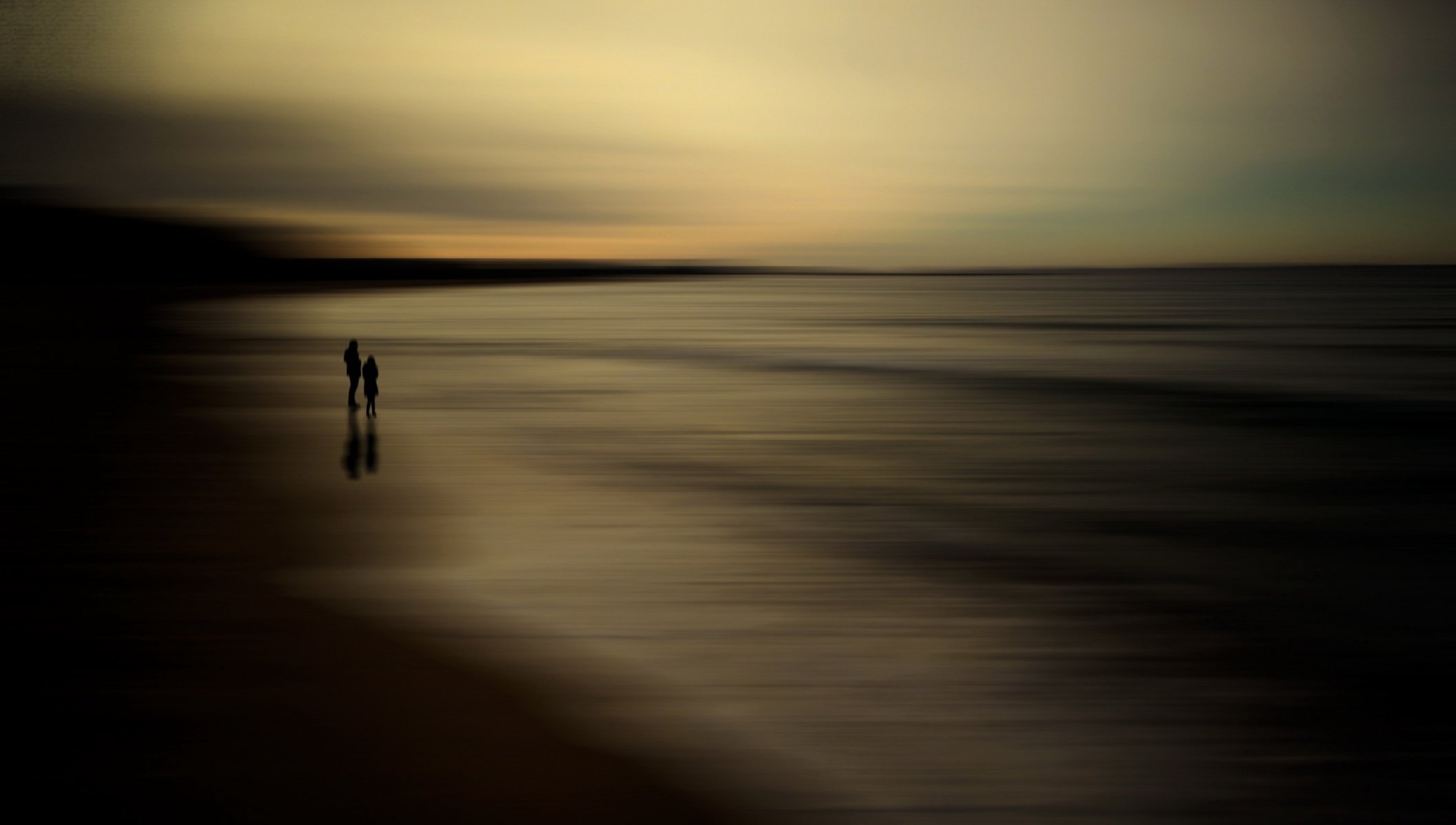 Zachód słońca nad morzem. Dziewczyna. Selfie