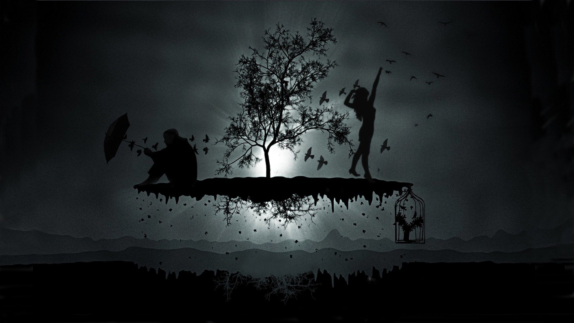 Quady na tle skał. Mroczna atmosfera