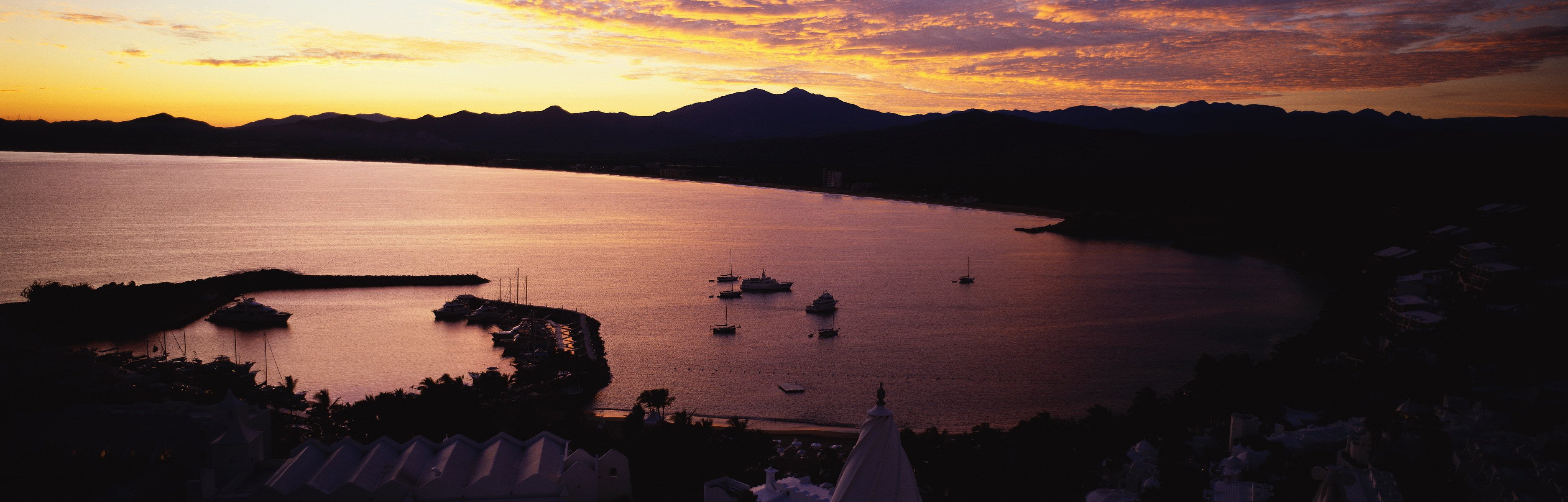 Przystań dla łodzi na tle kolorowego zachodu słońcaPrzystań dla łodzi na tle kolorowego zachodu Słońca