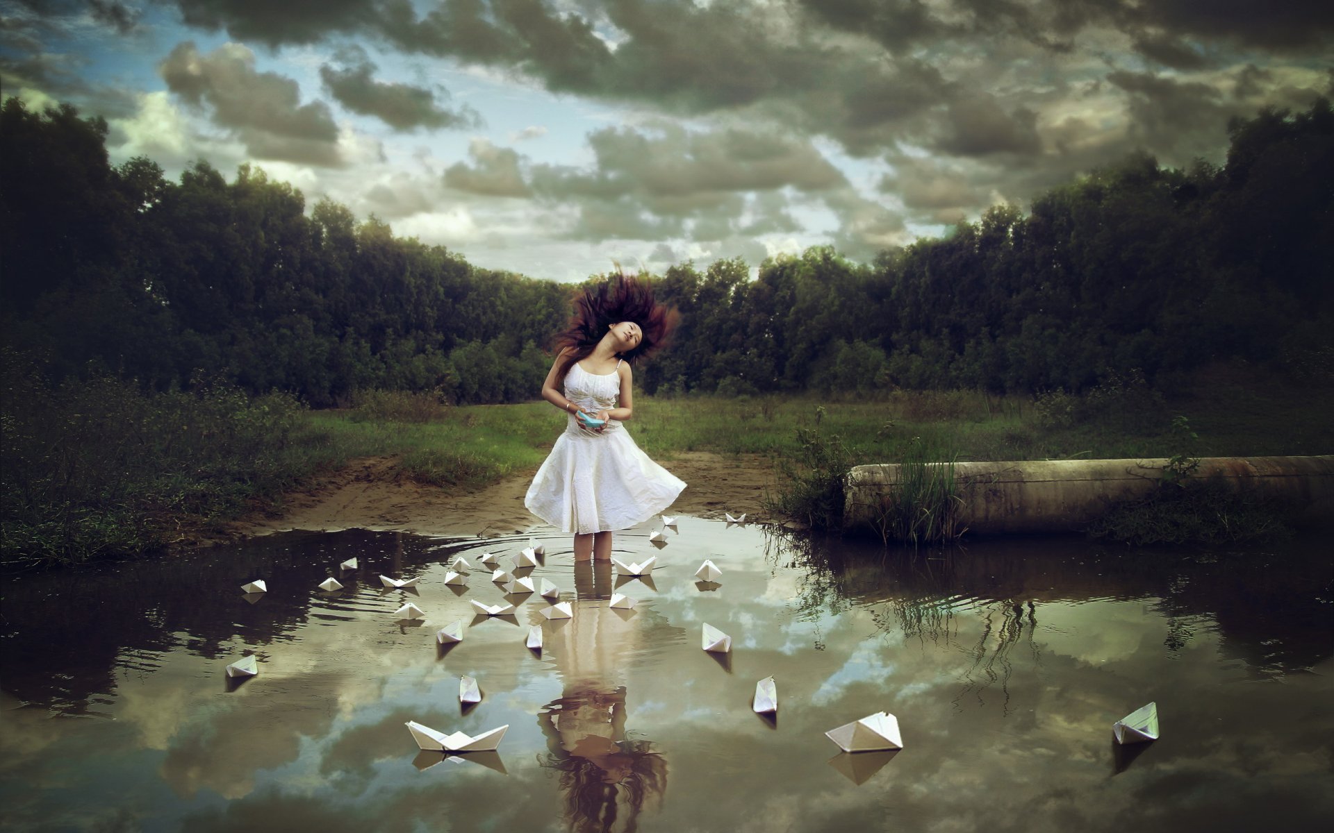 Mężczyzna leży na podłodze wśród mokrych łodzi