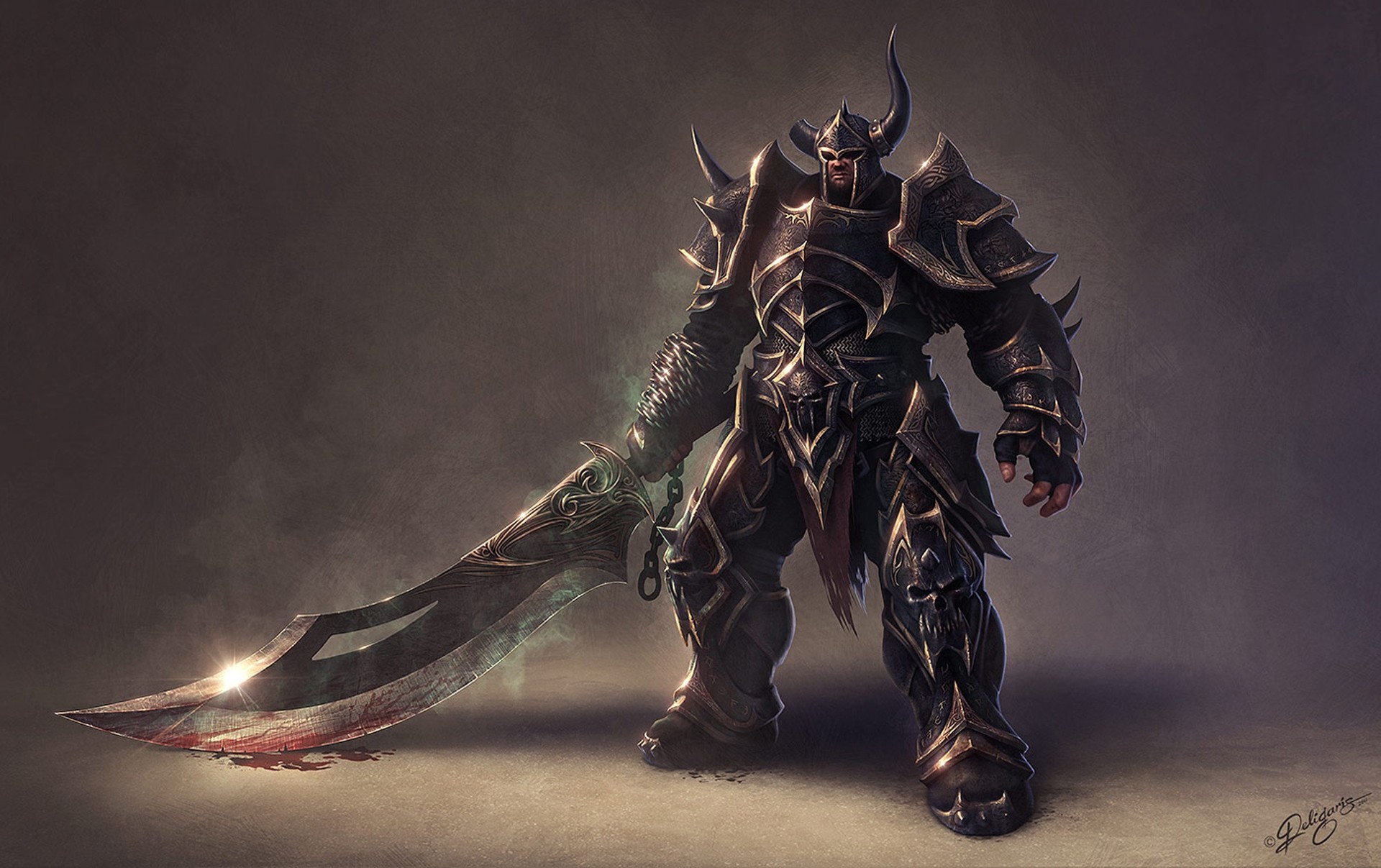 Wojownik-fighter po bitwie, opuścił swój zakrwawiony miecz