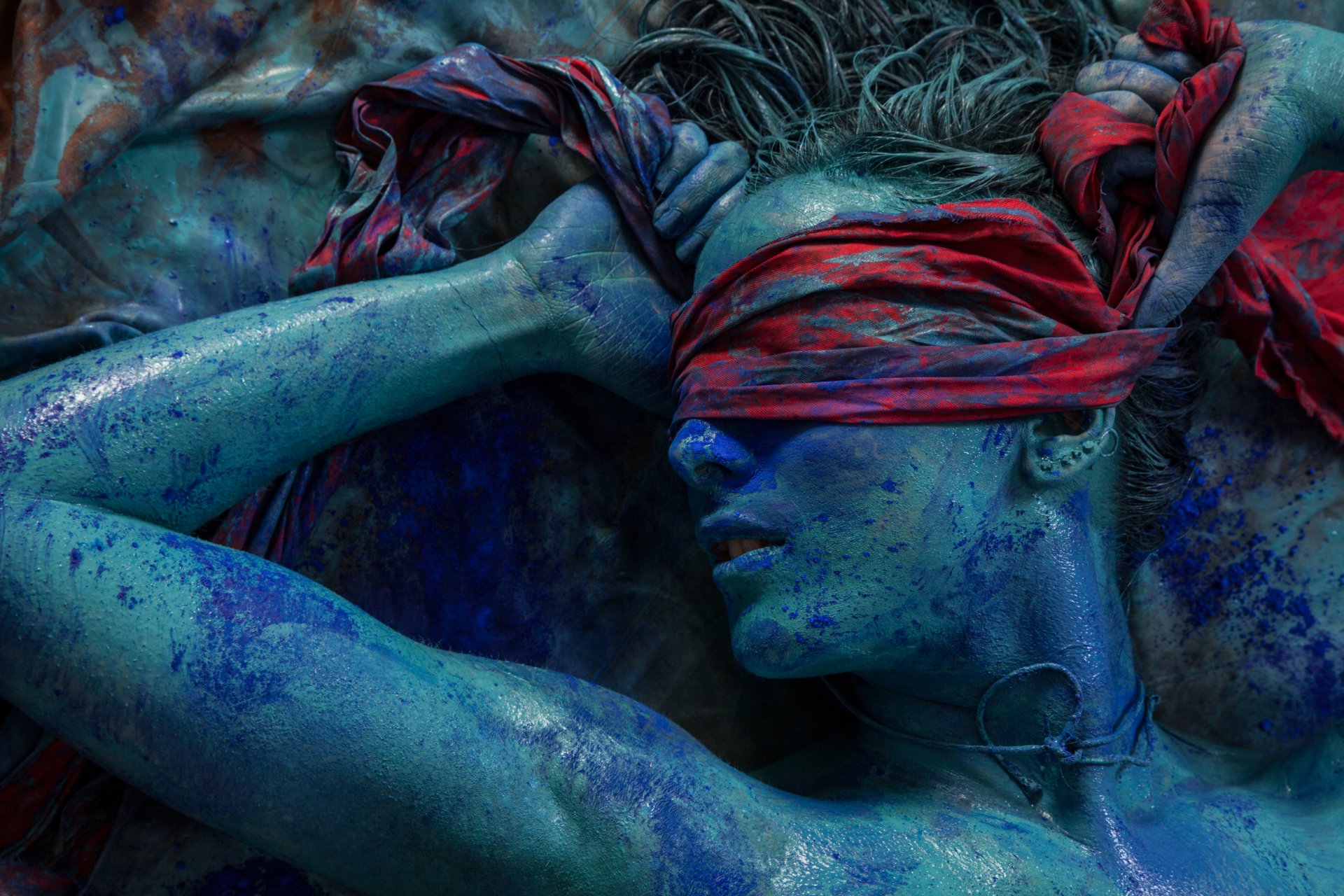 Dziewczyna z niebieskimi plamami w czerwonej opasce