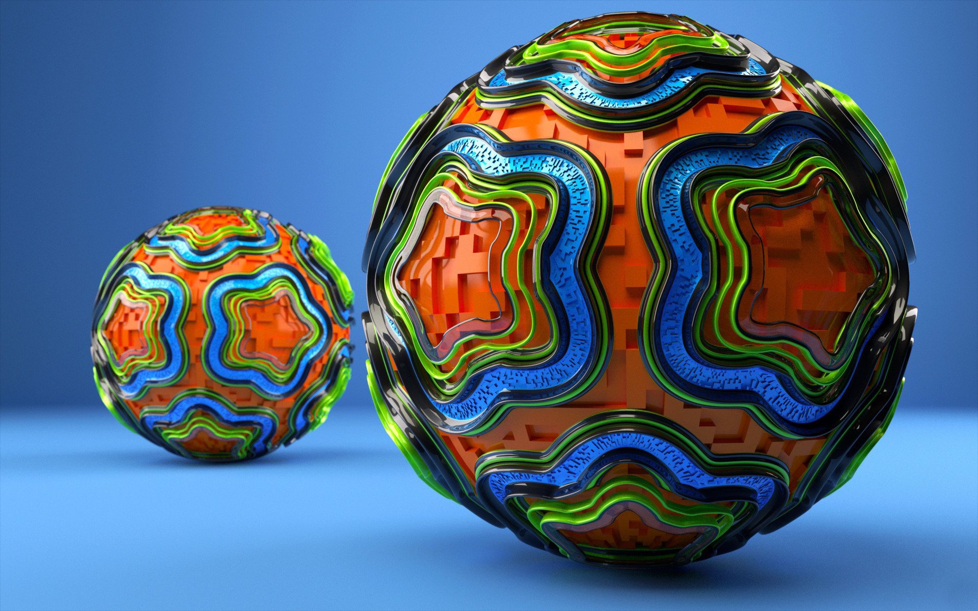 Kolorowe kulki i różne kształty za czarnym tle
