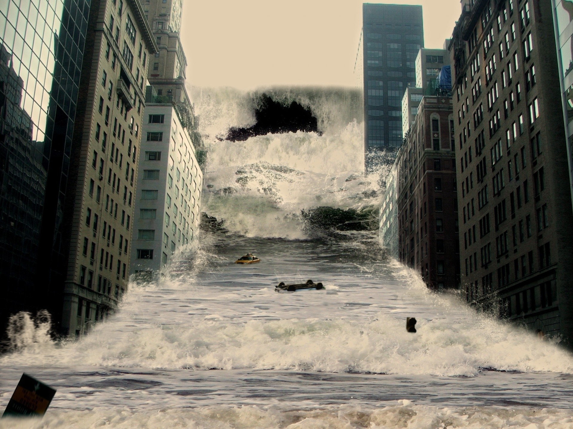 Katastrofa w mieście. powódź niszczy szklane wieżowceKatastrofa w mieście. Powódź niszczy szklane wieżowce