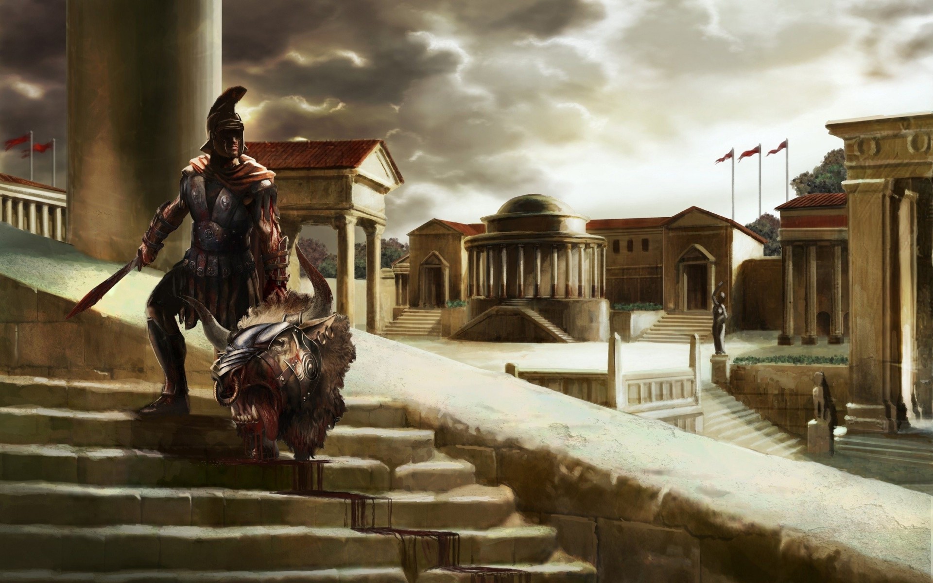 Obraz "starożytny żołnierz z mieczem w ręku"