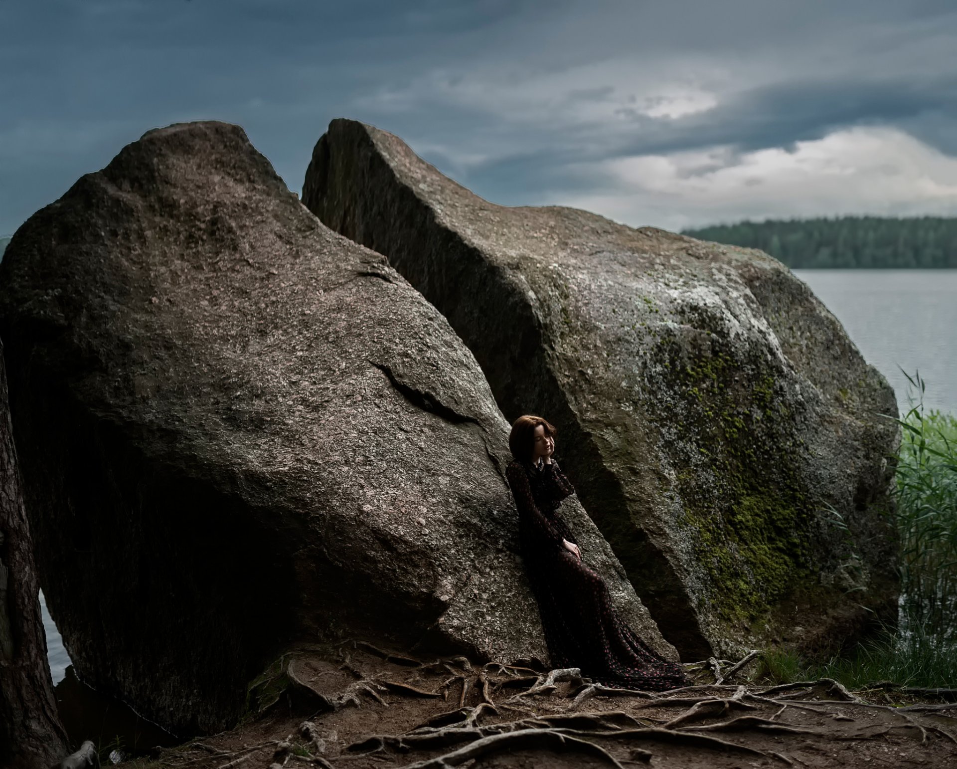 Dziewczyna siedzi na gałęzi drzewa do zdjęcia
