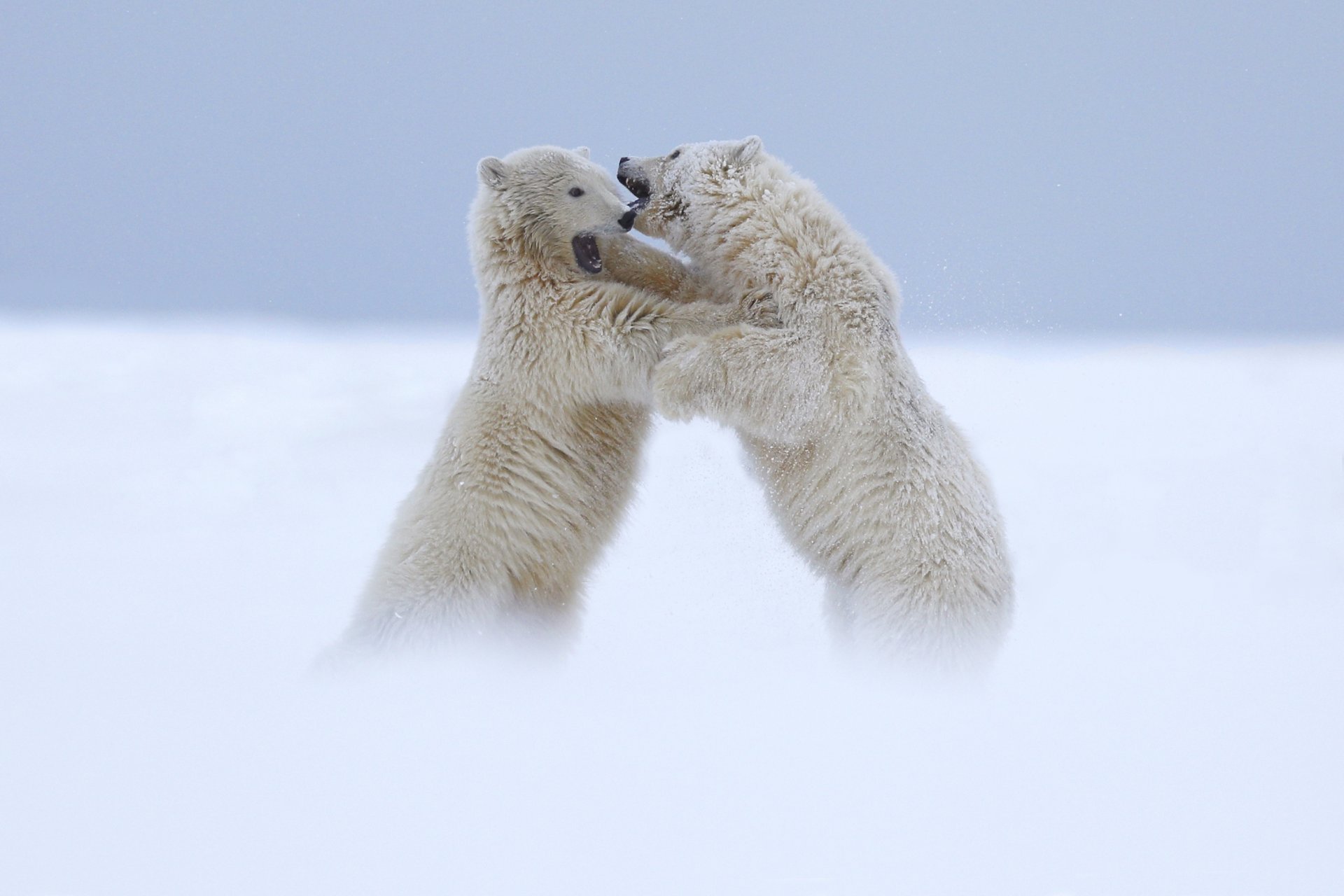 Dwa niedźwiedzie polarne gryzą się nawzajem