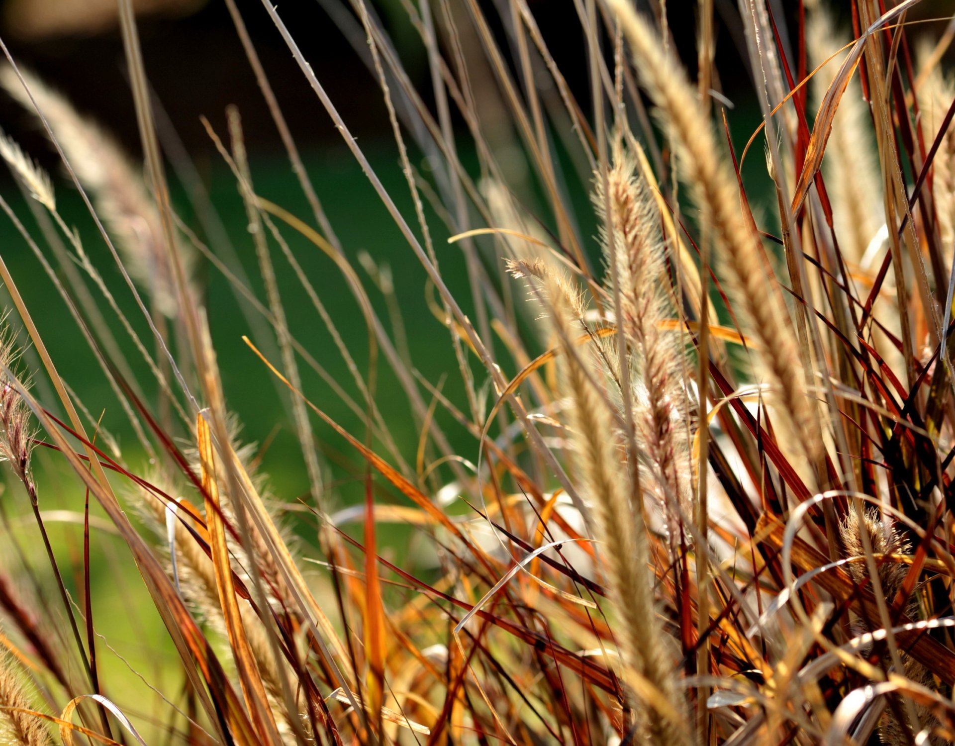 Zdjęcie makro: zielona trawa na tle błękitnego nieba z chmurami