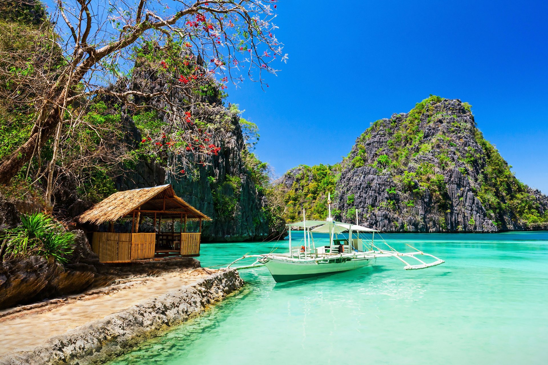 Krajobraz błękitnego morza i białej piaszczystej plaży