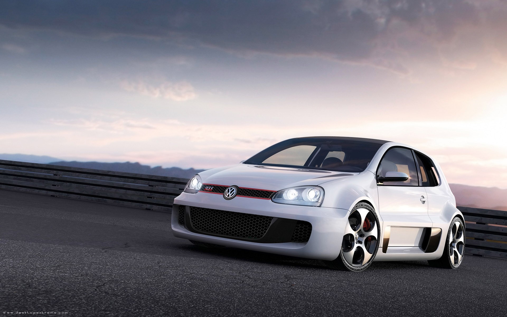 Czerwony Volkswagen Golf na tle zachodu Słońca