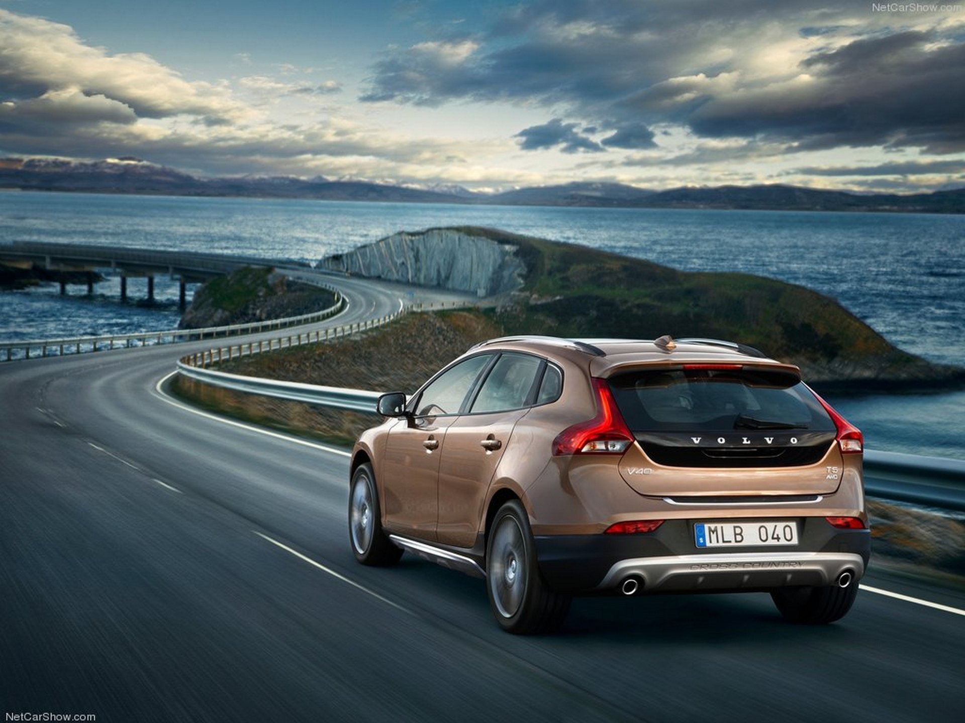 Samochód volvo jedzie drogą na tle morza