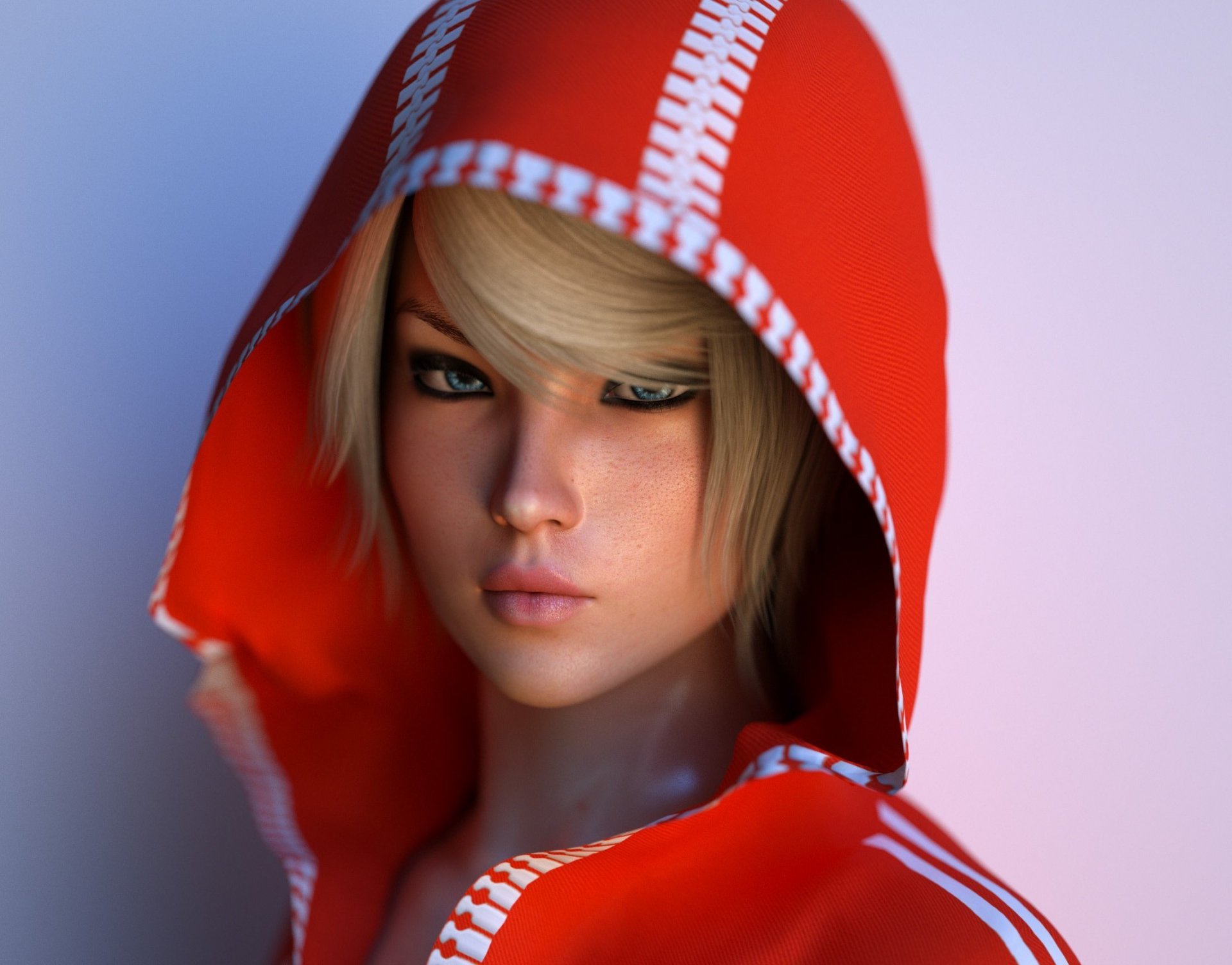 Obraz sztuki legenda korry, maska z brokatem w kapturzeObraz sztuki Legenda Korry, maska z brokatem w kapturze