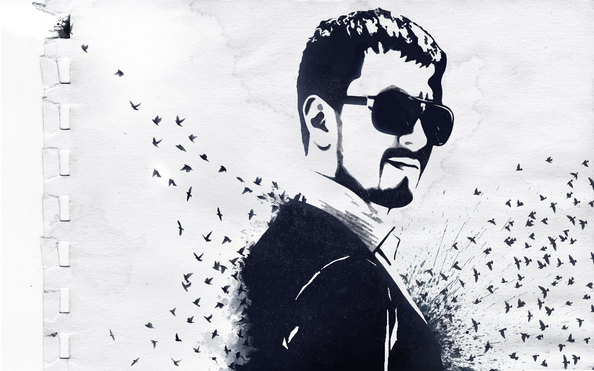 Czarno-biały obraz mężczyzny w okularach przeciwsłonecznychCzarno-biały obraz mężczyzny w okularach przeciwsłonecznych
