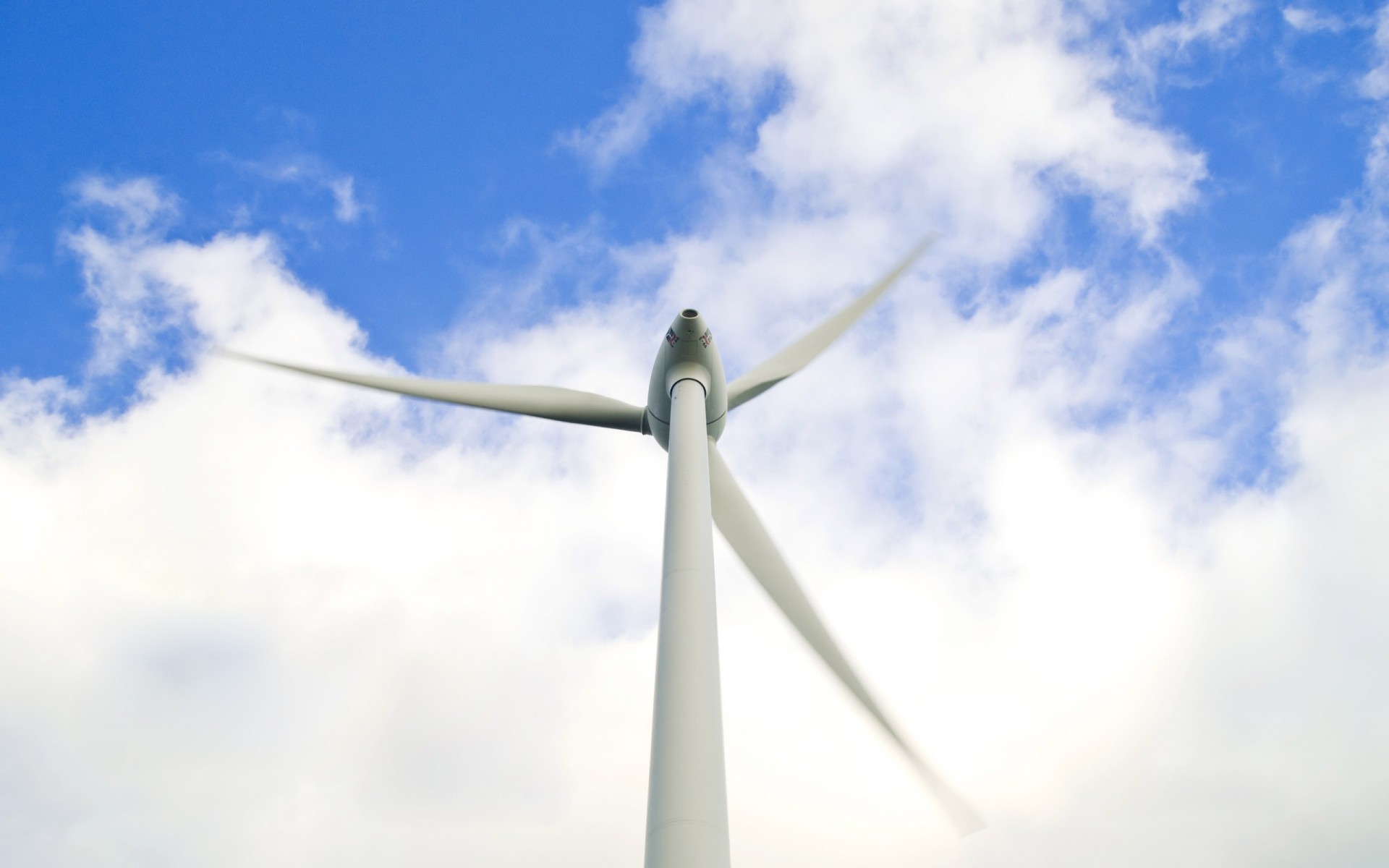 Energetyczny wiatrak na tle zachmurzonego nieba