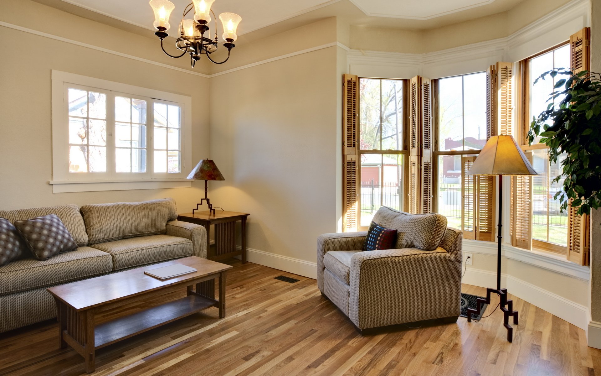 Nowoczesny salon w mieszkaniu stylizowanym na Wiejski Dom z kominkiem i dywanami