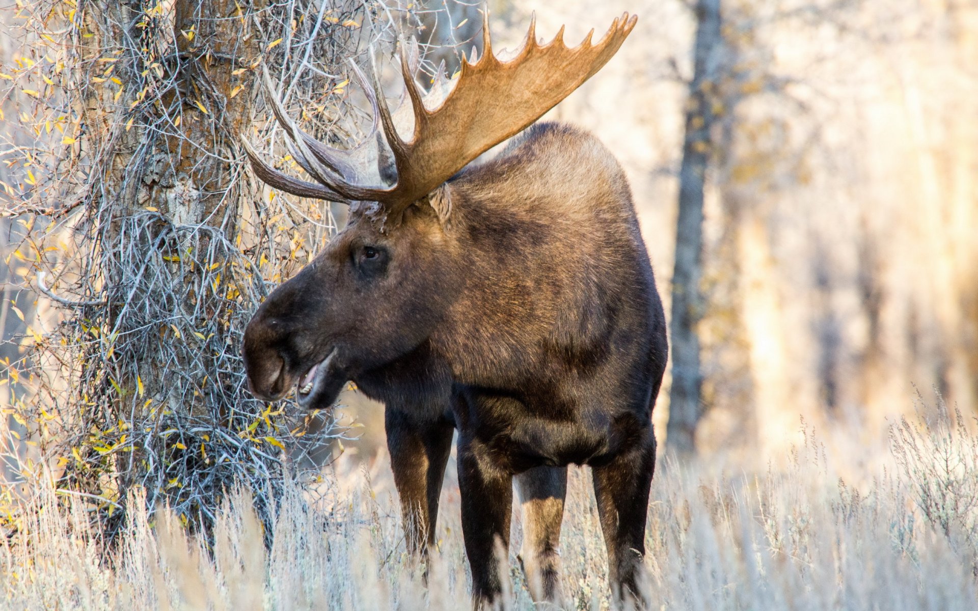 Wielki łoś w zimowym lesie