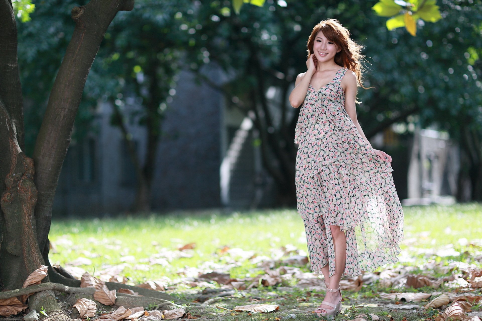Dziewczyna w sukience idzie na spotkanie
