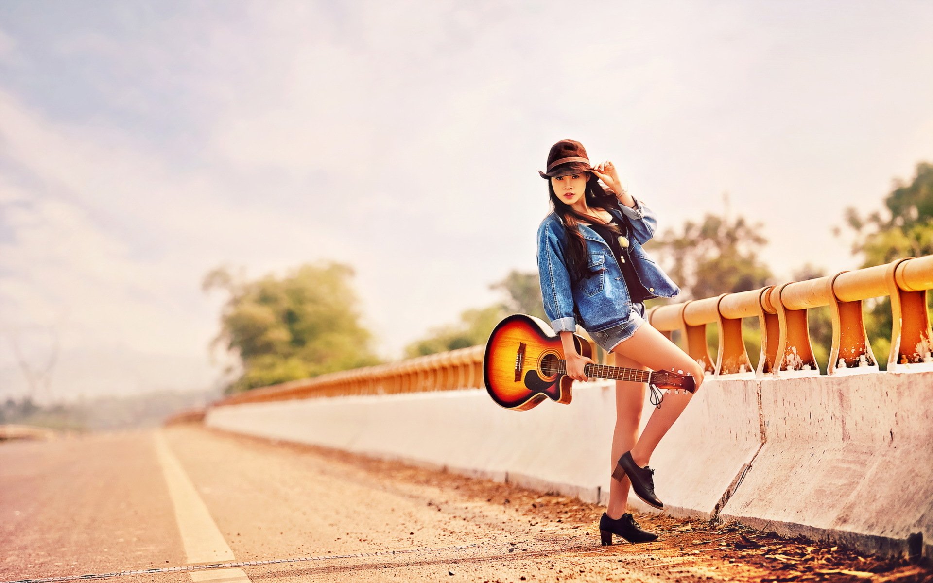 Dziewczyna w słuchawkach przy ścianie z graffiti gra na gitarzeDziewczyna w słuchawkach przy ścianie z graffiti gra na gitarze