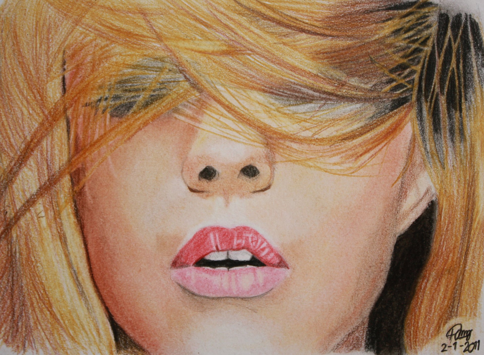 Namalowany portret dziewczyny z oczami zamkniętymi włosami