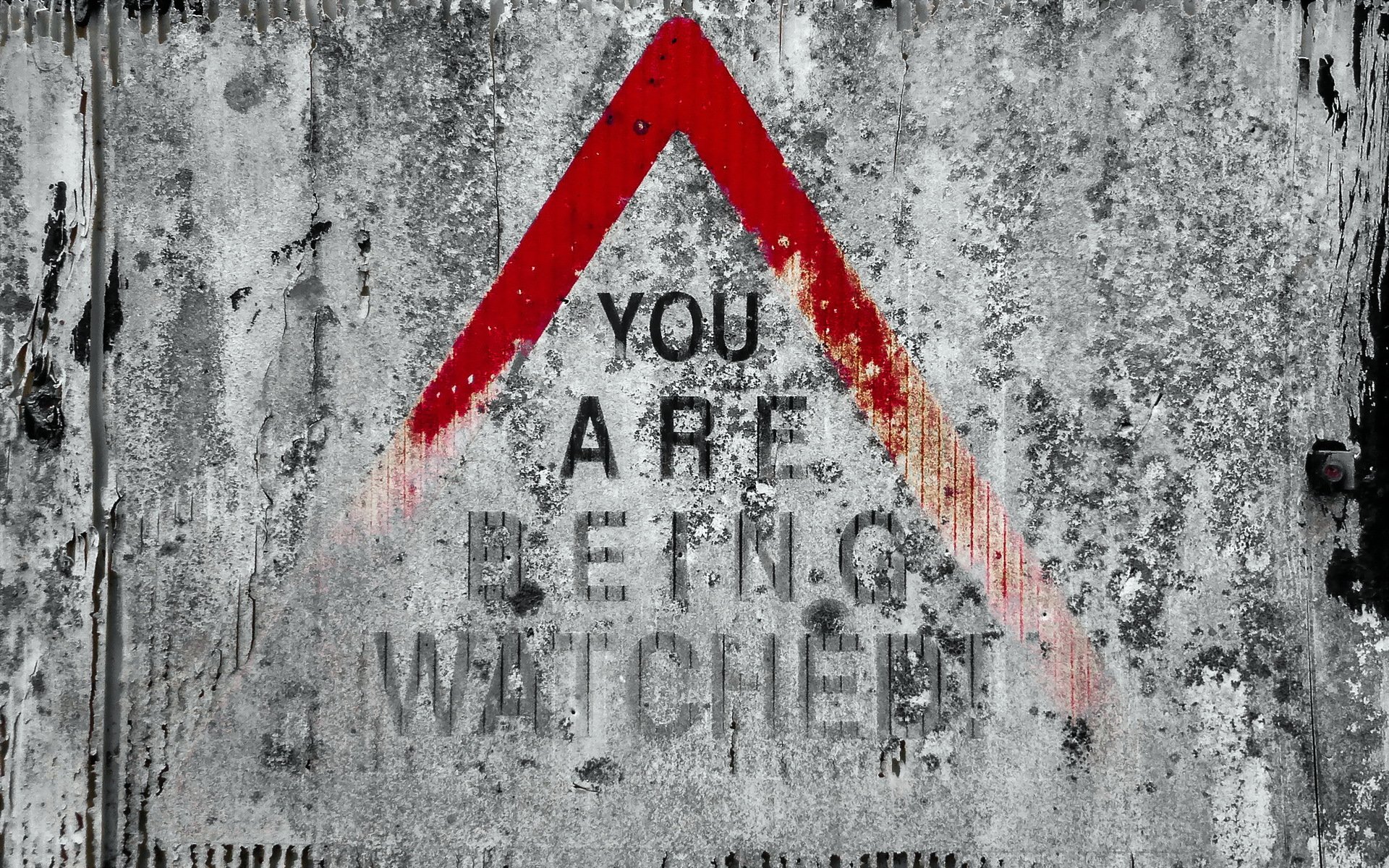 Czerwony znak ostrzegawczy "jesteś obserwowany"
