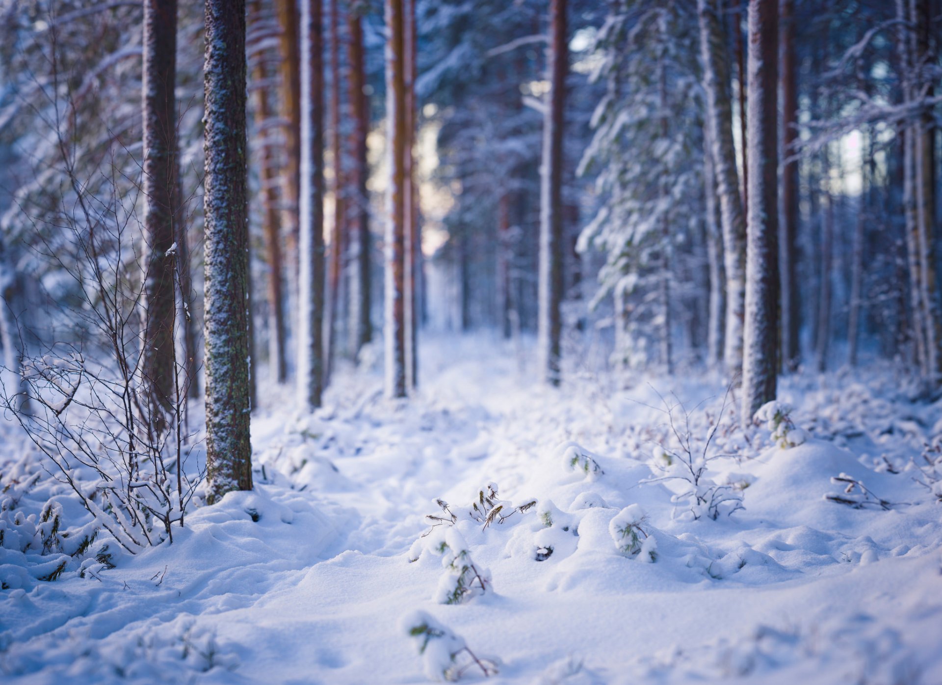 Śnieżny krajobraz zimowego lasu