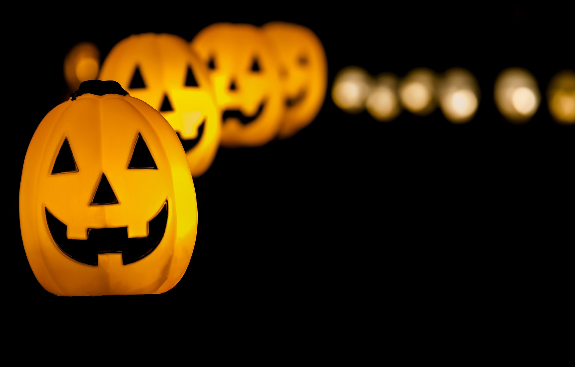 Zdjęcie przedstawiające dynie i nietoperze na Halloween