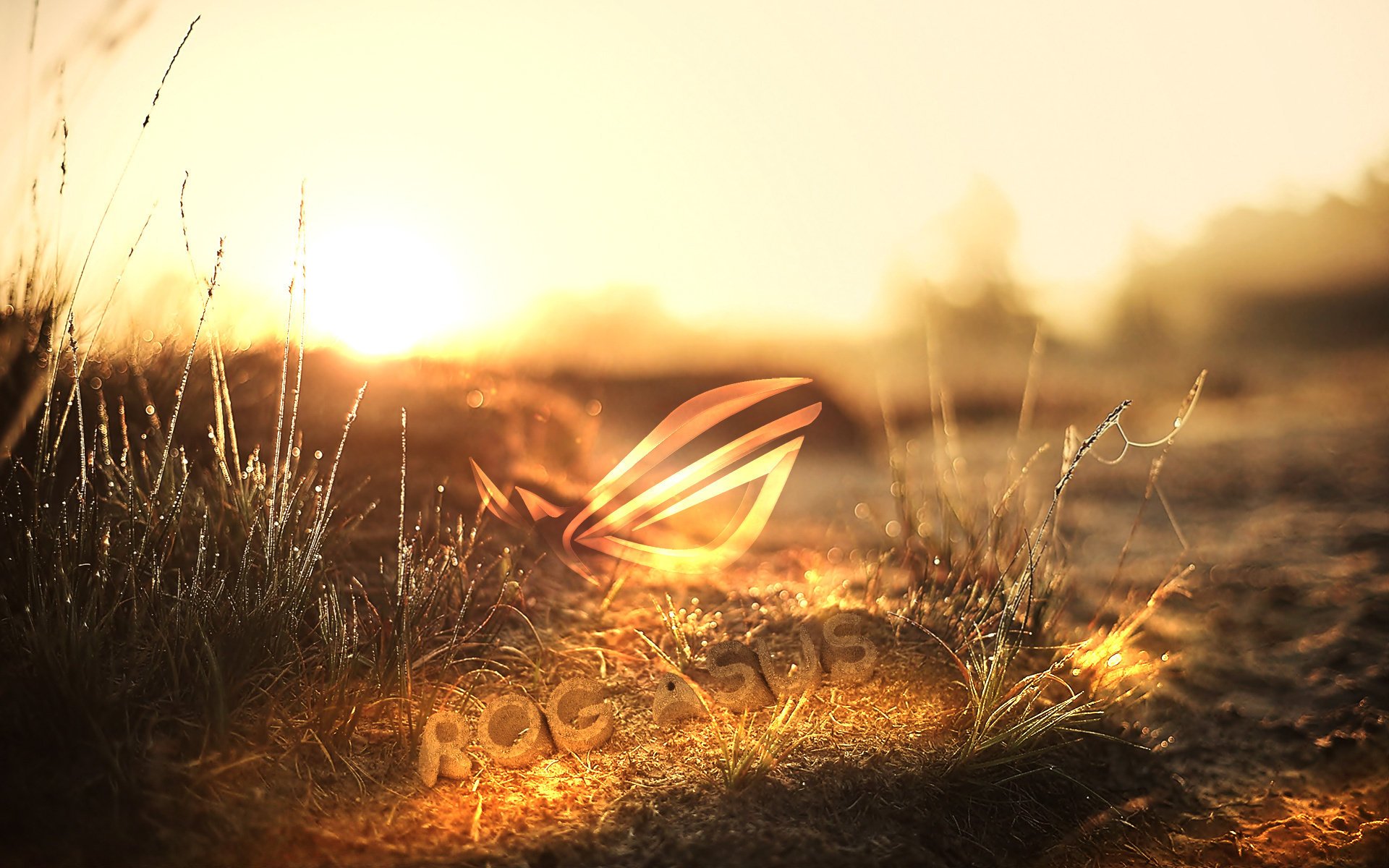 Słoneczny Zachód słońca zachodzącego słońca z odbiciem promieni na trawie