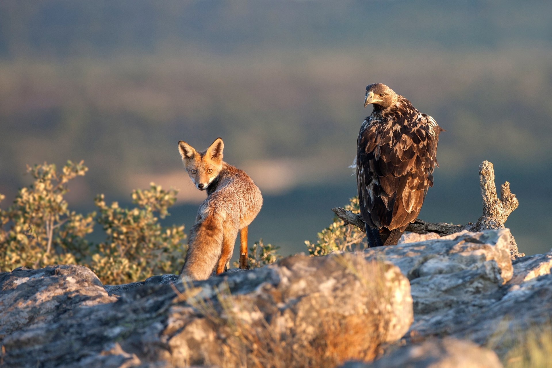 Niedźwiedź polarny i lis polarny na tle śniegu