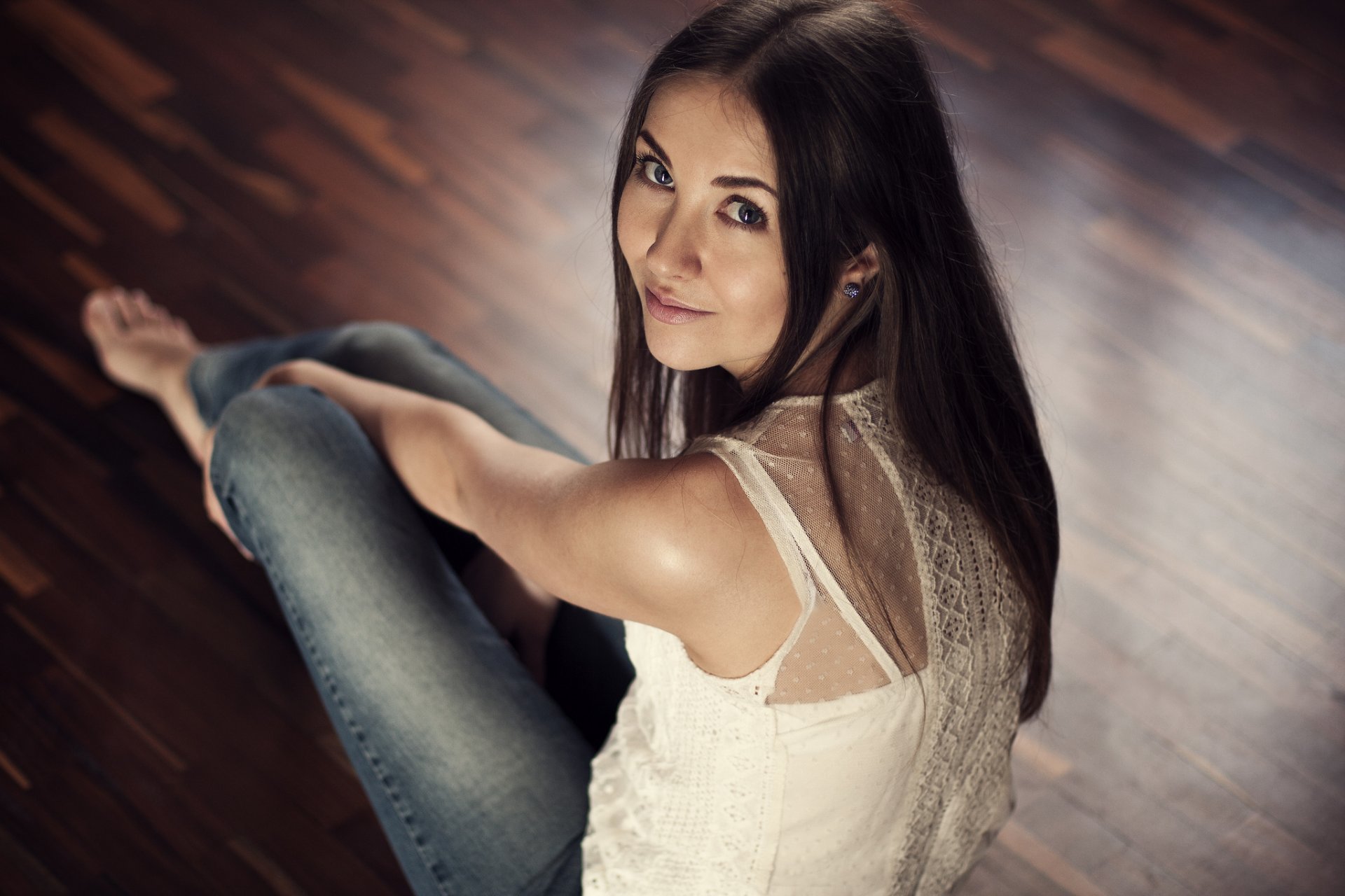 Portret dziewczyny Brunetki z wieńcem z kwiatów
