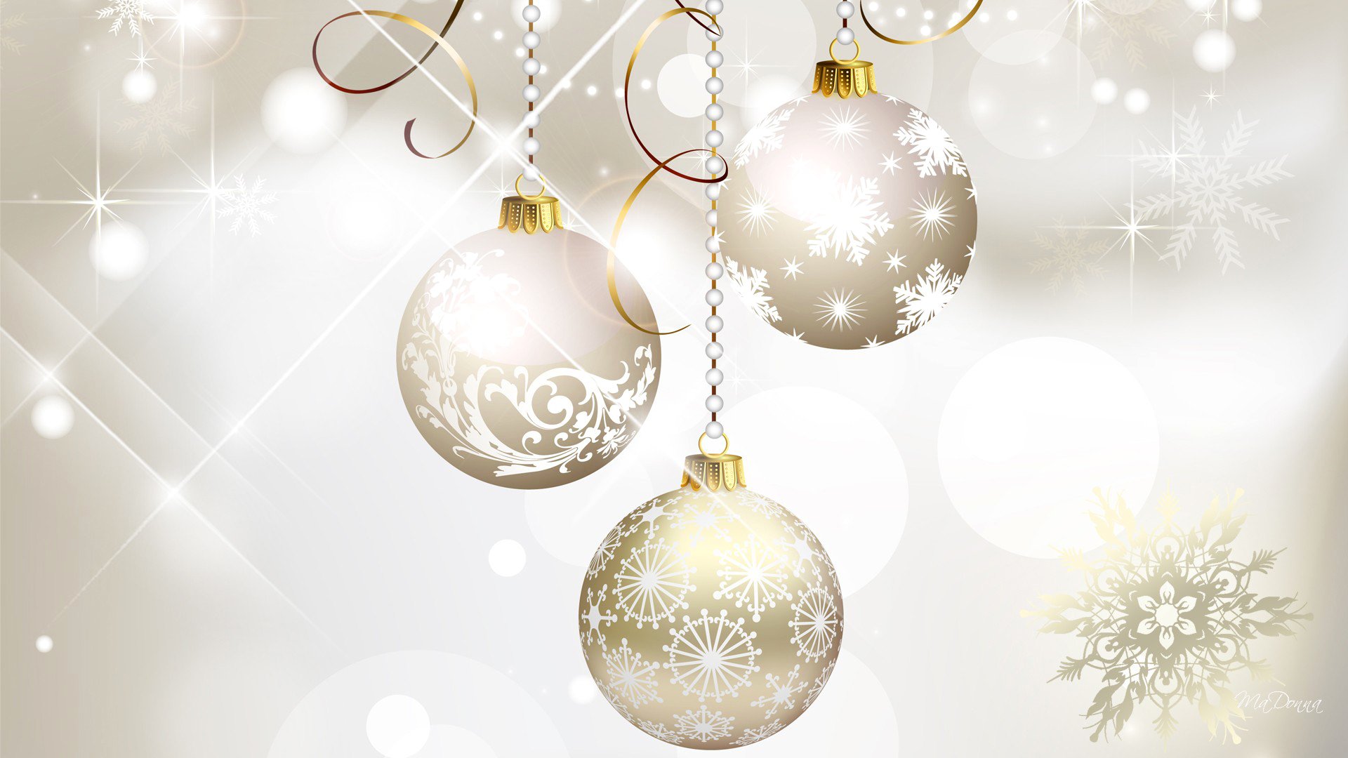 Zapalone świece i złote bombki leżące na stole wysadzanym koralikamiZapalone świece i złote bombki leżące na stole wysadzanym koralikami