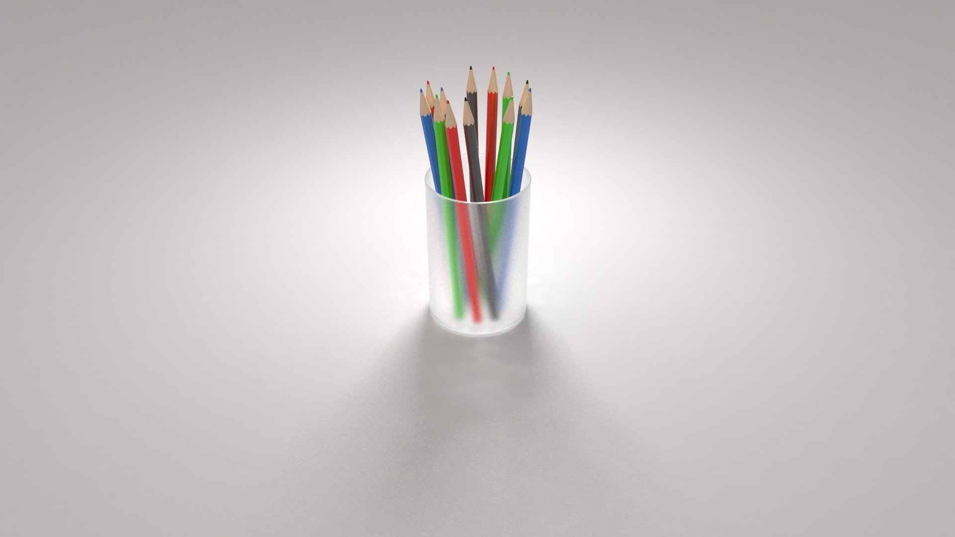 Kolorowe kredki w szklance na szarym tle