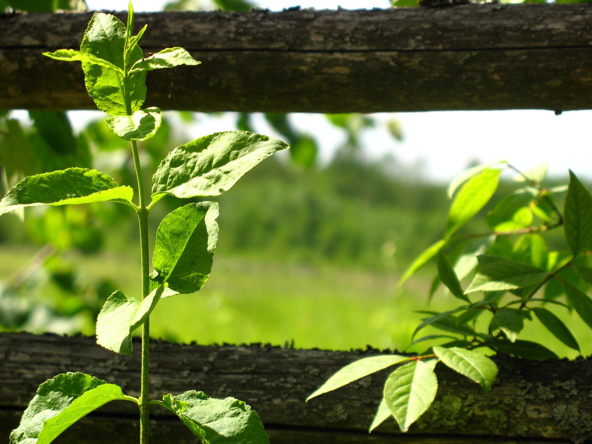 Wiejski krajobraz. Kwitnące ziemniaki. Drewniany płot nad rzeką