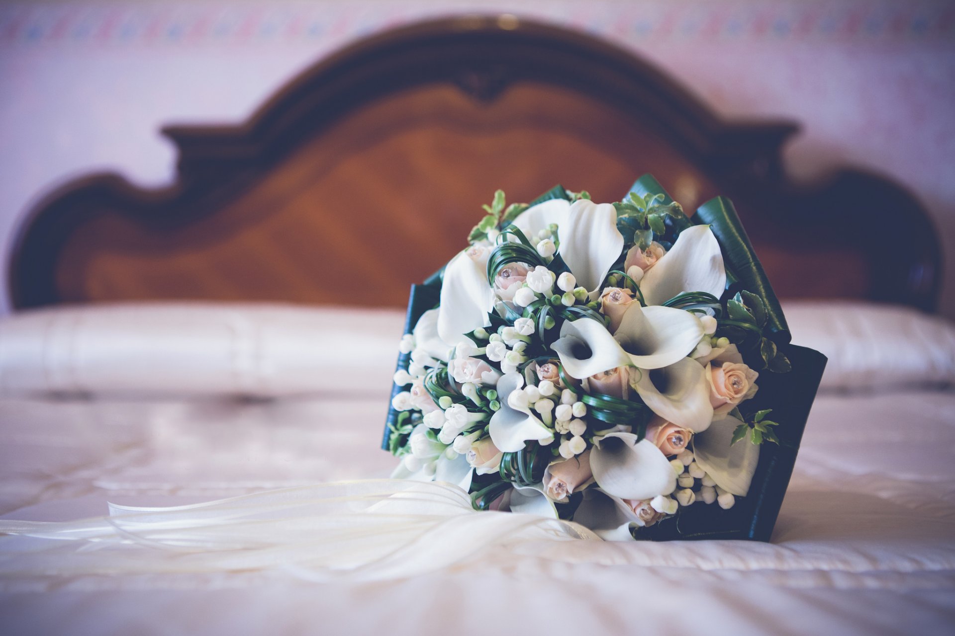 Bukiet ślubny panny młodej czeka na uroczystą godzinę