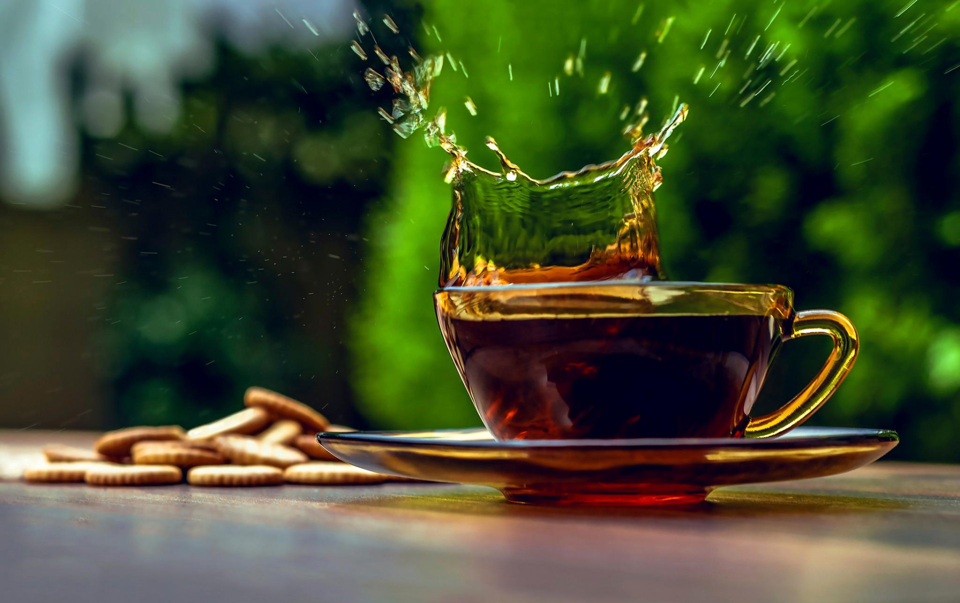 Ciasteczka i filiżanka herbaty. Bukiet róż