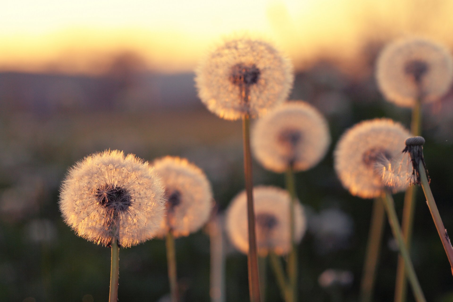 Pole puszystych mniszek lekarskich. Tylko Dun. Przyjaciele wiatru