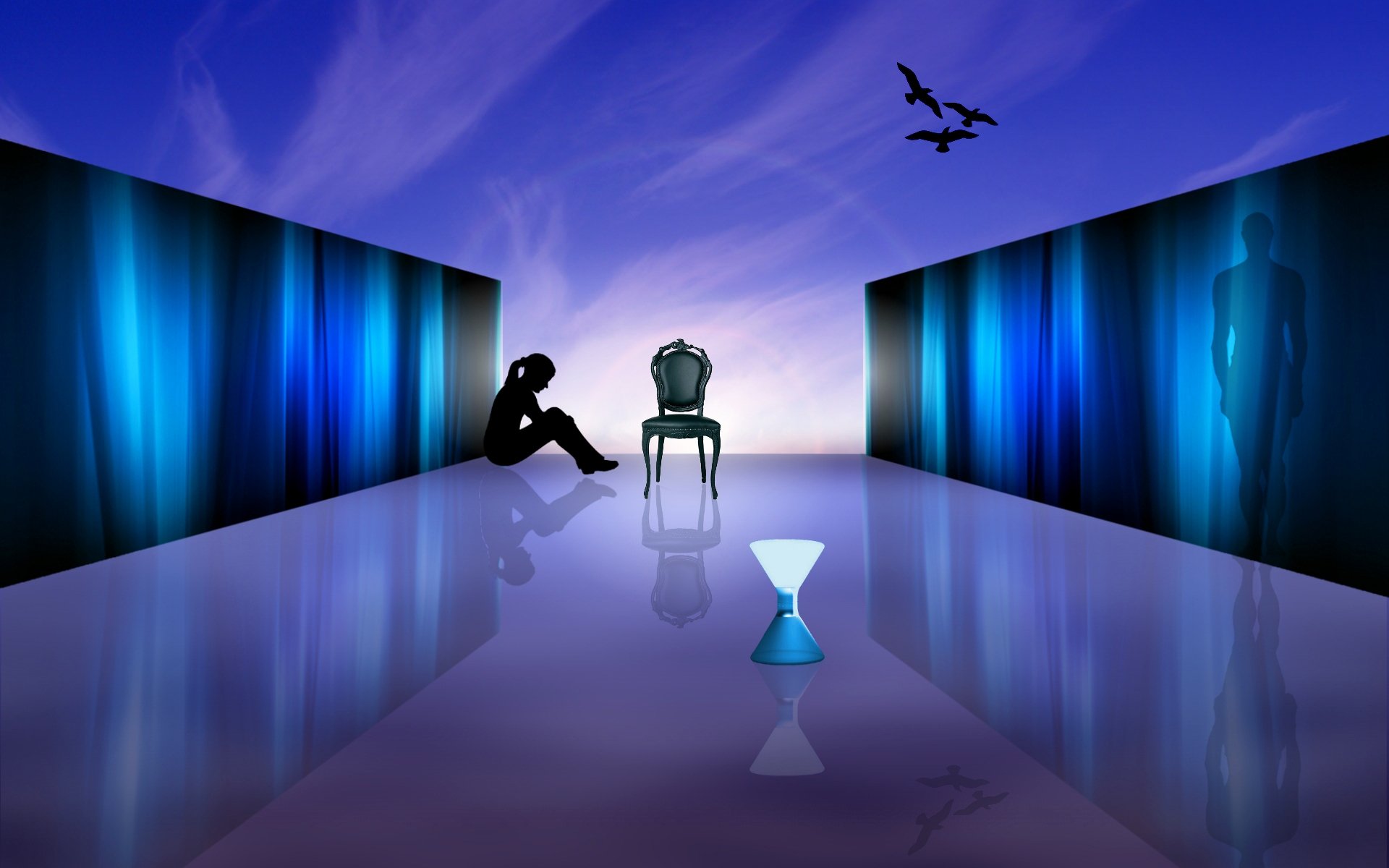 Sylwetka samotnej dziewczyny siedzącej na podłodzeSylwetka samotnej dziewczyny siedzącej na podłodze