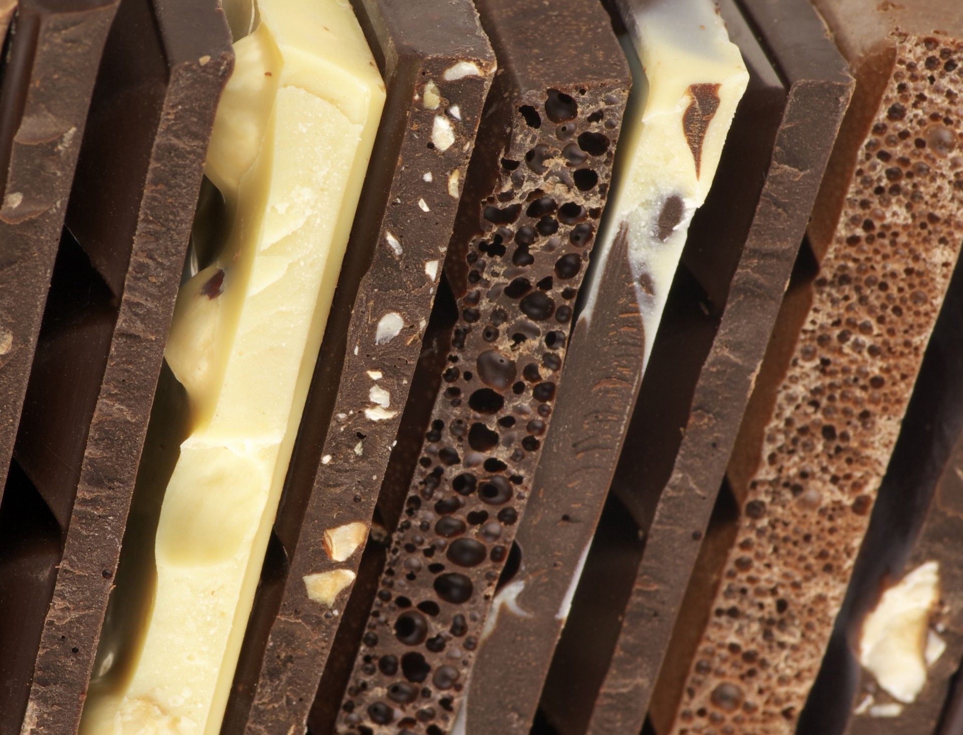 Różne odmiany czekolady w przekroju