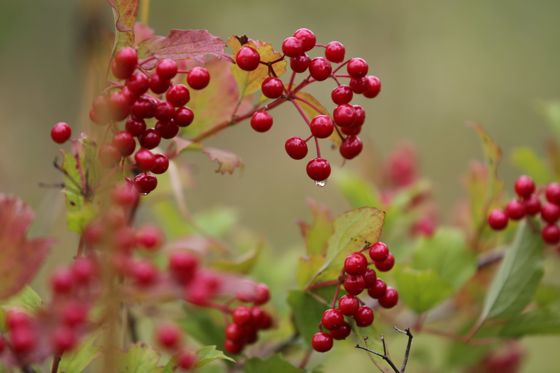Czerwona kalina na początku jesieni