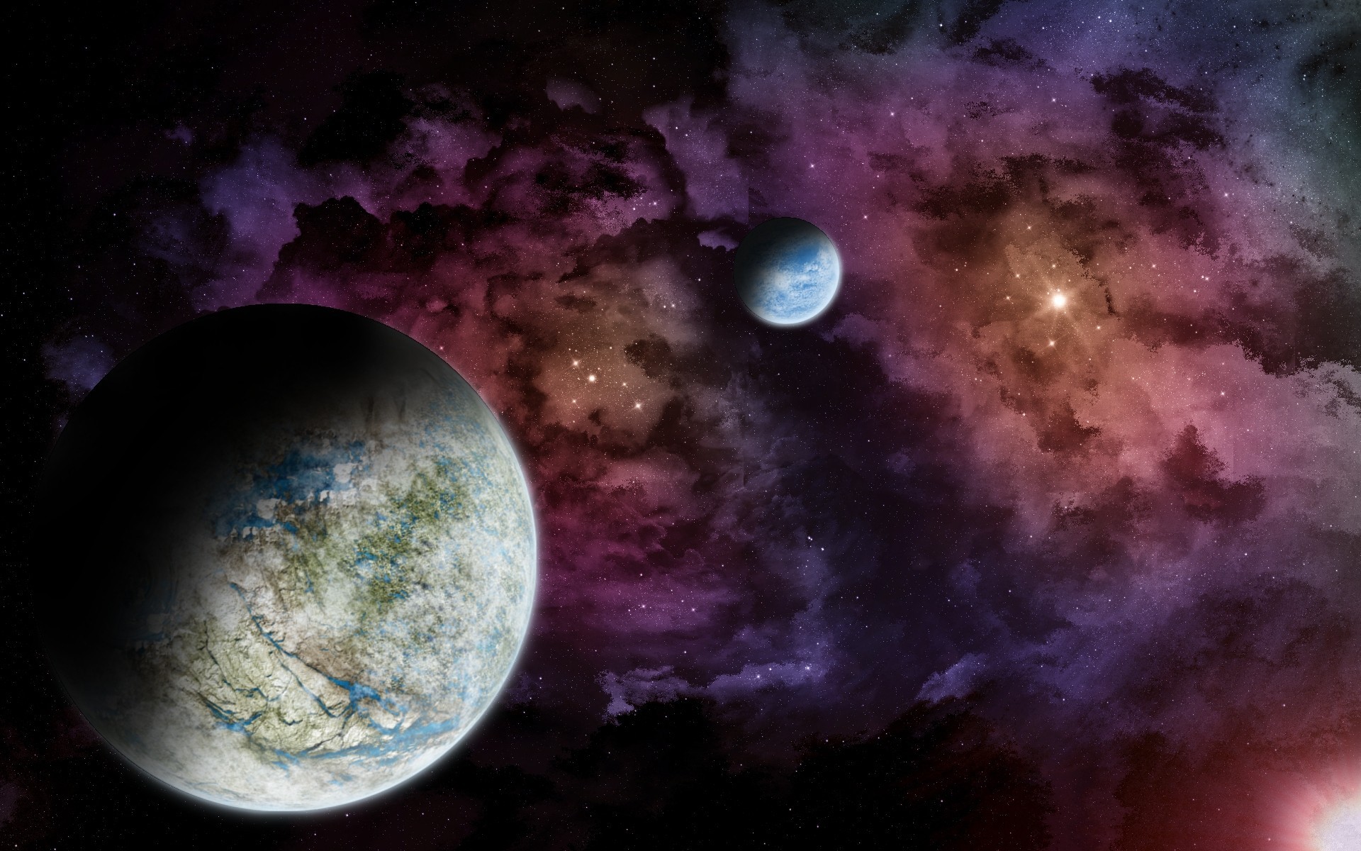Piękna planeta na tle gwiazdy i Księżyca