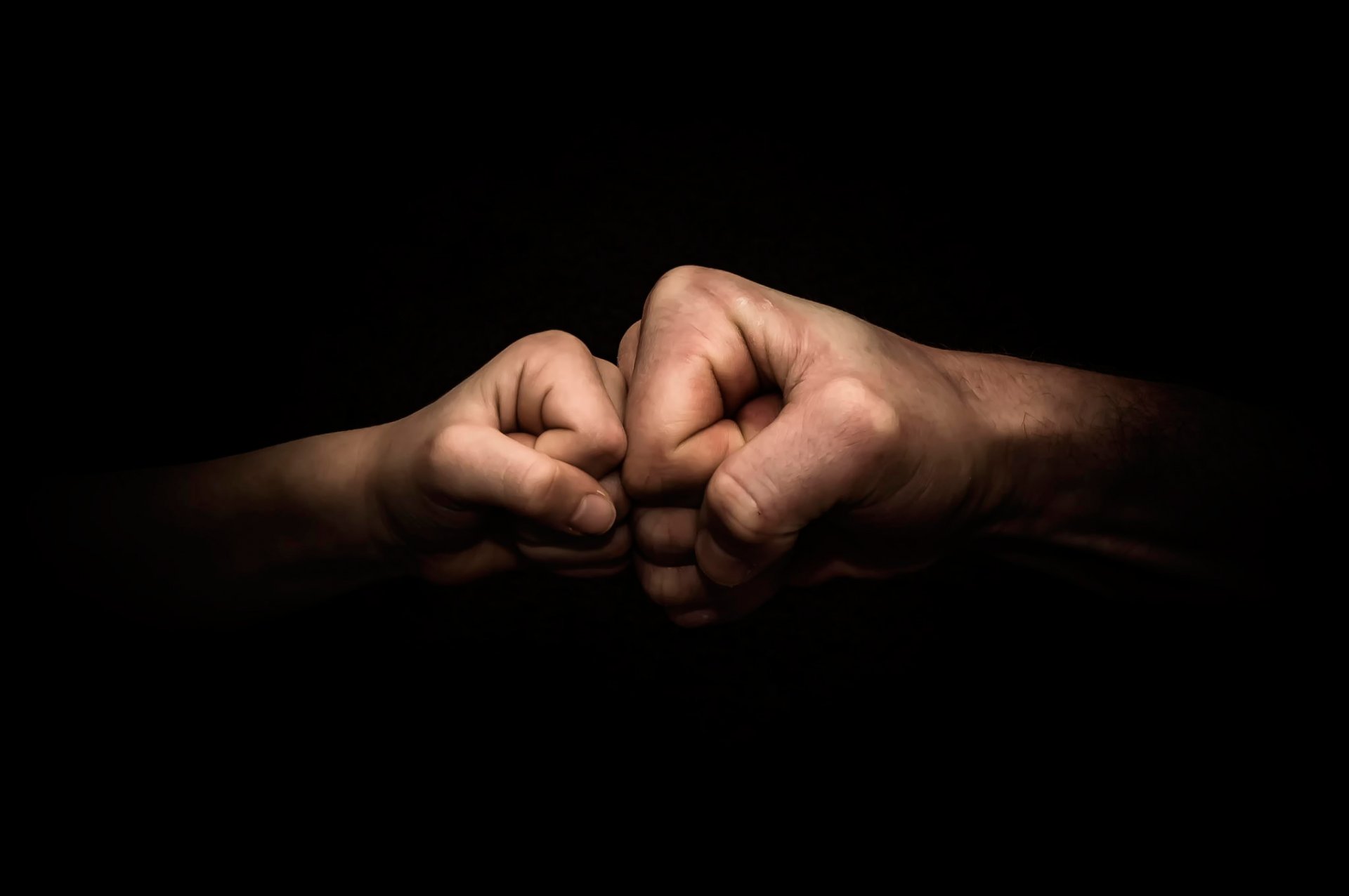 Obraz pięści chłopca i mężczyzny razem